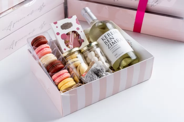 יין בן זמרה 500 מל צנצנת כדורי פררו צנצנת אלפחורס כדורי שוקולד 6 מקרונים טבלאת שוקולד יער הקקאו