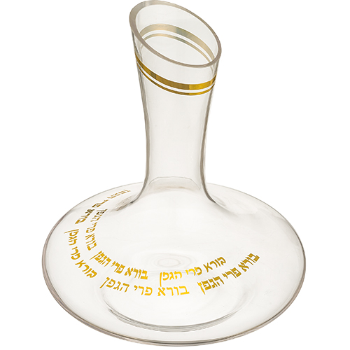 / בקבוק זכוכית ליין עם "בורא פרי הגפן" זהב 26 ס"מ