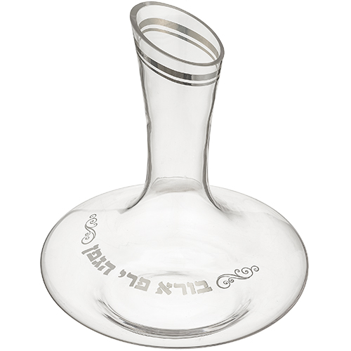 / בקבוק זכוכית ליין עם "בורא פרי הגפן" כסף 26 ס"מ