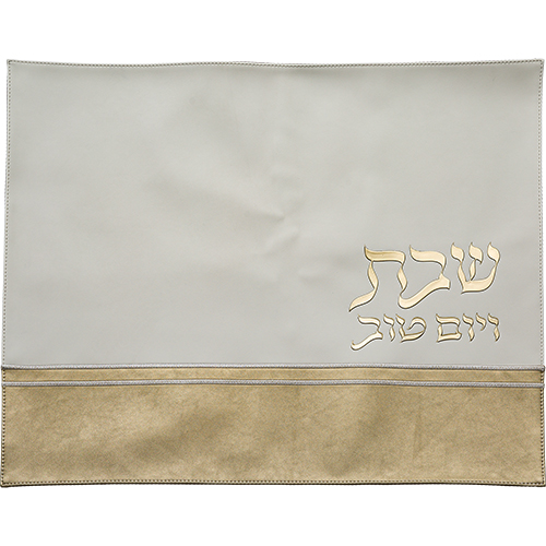 / כיסוי חלה מהודר דמוי עור לבן וזהב עם הבלטות 42×52 ס"מ