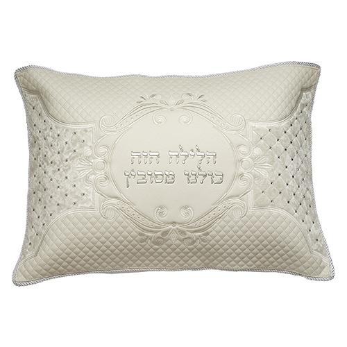 / כרית הסבה מהודרת דמוי עור עם רקמה ואותיות בולטות כסף 50*72 ס"מ