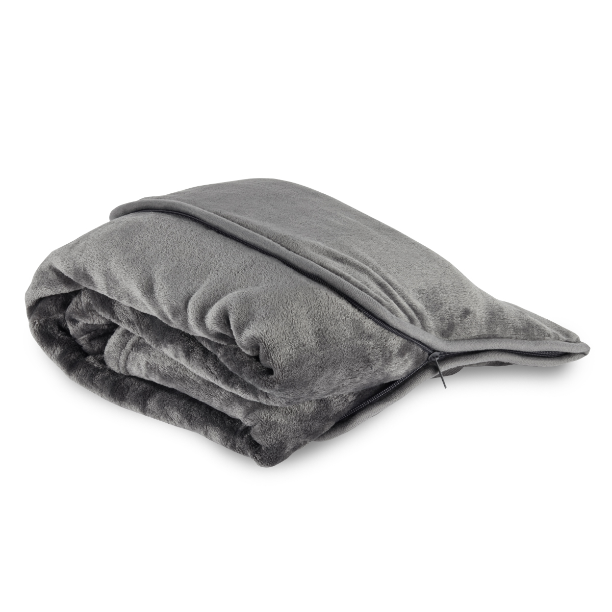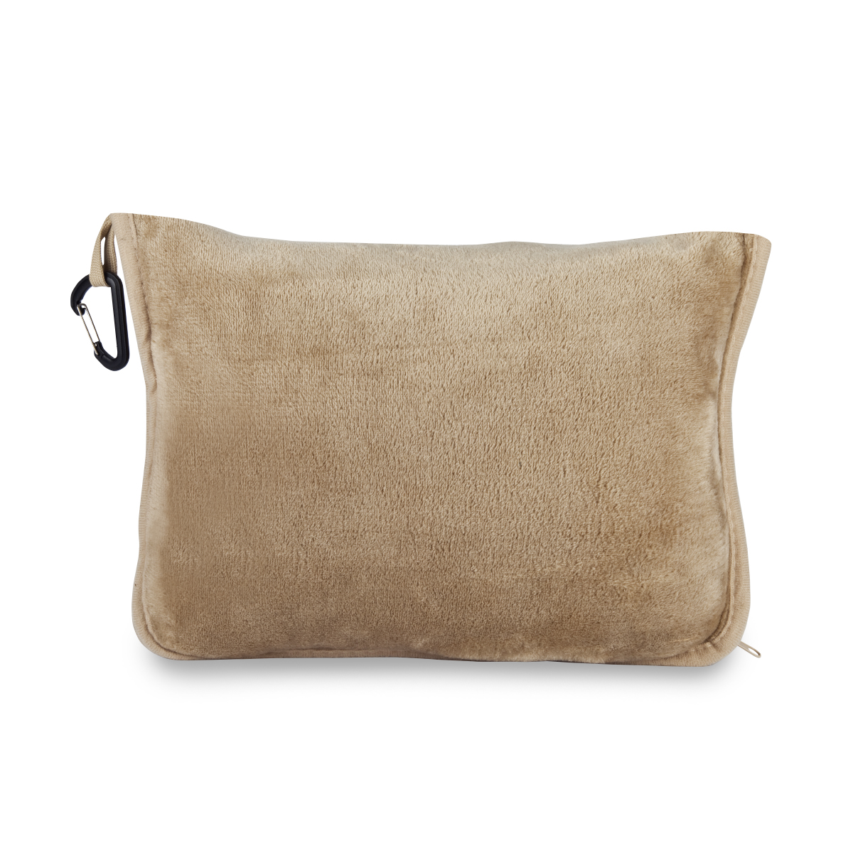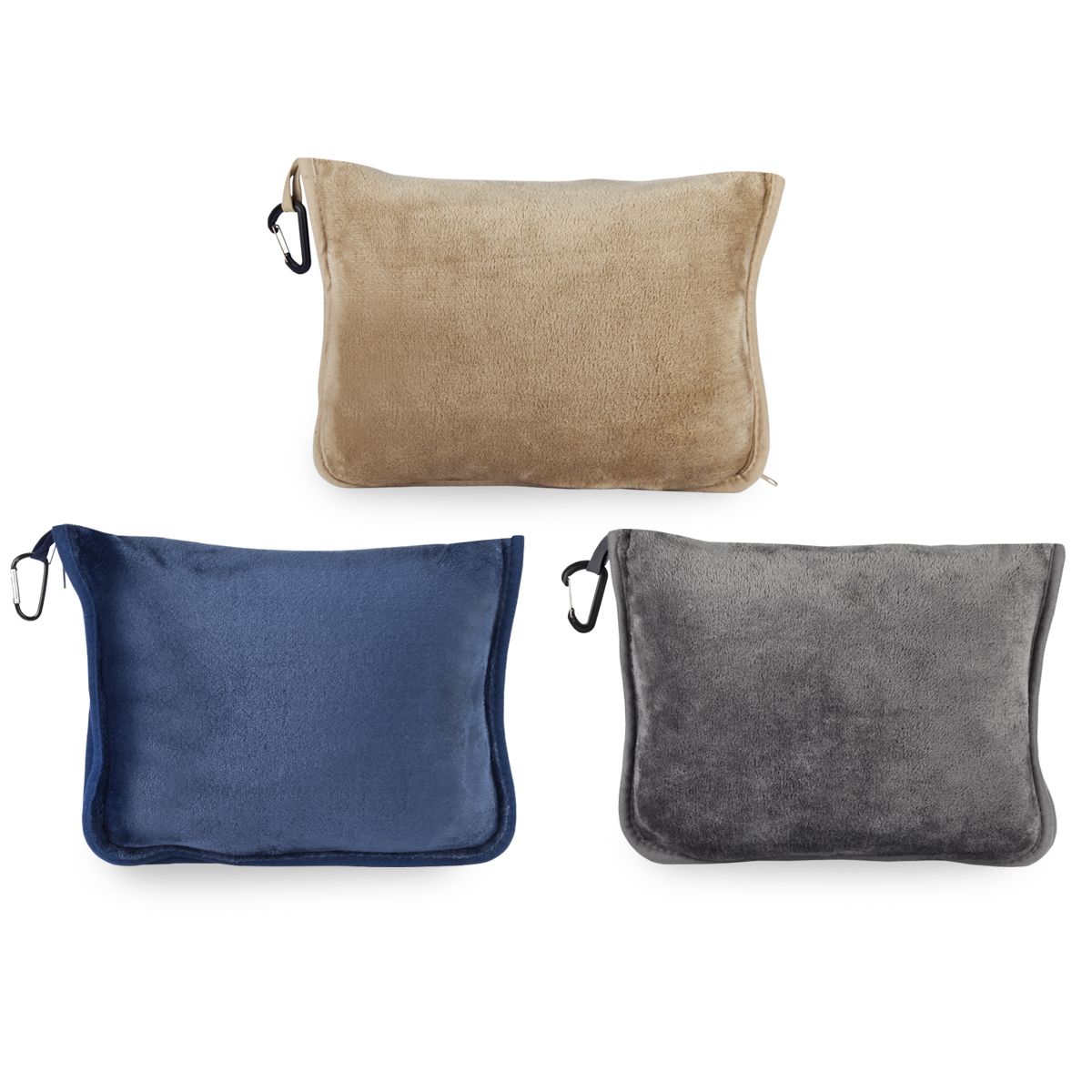 כרית נסיעות, שמיכת פלנל פרוותית ומפנקת. מגיעה בתוך תיק נשיאה תואם, סגירת רוכסן. טבעת נשיאה/תלייה, רצועה אחורית לידית מזוודה. מידות השמיכה: 150*120 ס״מ .