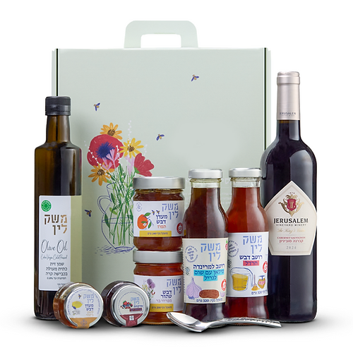מארז עשיר שמביא איתו שילוב של מתוק, מלוח וחריף – עם רכיבים שימושיים וטעמים עונתיים. יין לבן ריזלינג קל ומעודן, שמן זית בכבישה קרה, רוטב חרדל דבש ומרינדה בתיבול סילאן ושום – כולם מוכנים לבישול, תיבול או צלייה. הצד המתוק כולל שלושה ממרחים איכותיים: דבש טהור מפרחי בר, מעדן תפוז ודבש, ומרקחת פירות יער.