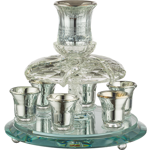 / מחלק יין מסתובב קריסטל מהודר עם 6 כוסיות "כסף" 25*33 ס"מ