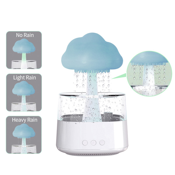 עם תאורה ואפשרות לשים נוזל ריחני בשילוב מים עם 6 מצבי תאורה הניתנים לשליטה ותאורה מתחלפת 2 מצבי אווירה של טיפות המדמות גשם.