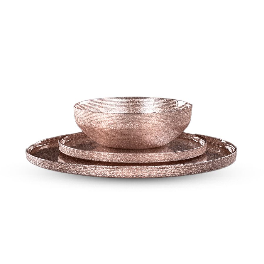 סט אוכל 18 חלקים זכוכית GLAMOUR רוז גולד