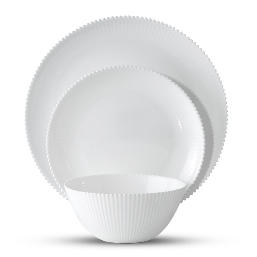 סט אוכל 18 חלק זכוכית אנטי צ'יפ אופל לבן מרוקע STRIPES