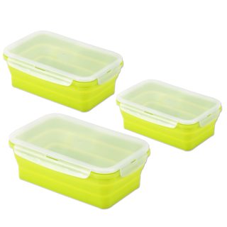 סט של 3 קופסאות אוכל מסיליקון, ניתנות לדחיסה אחרי השימוש.