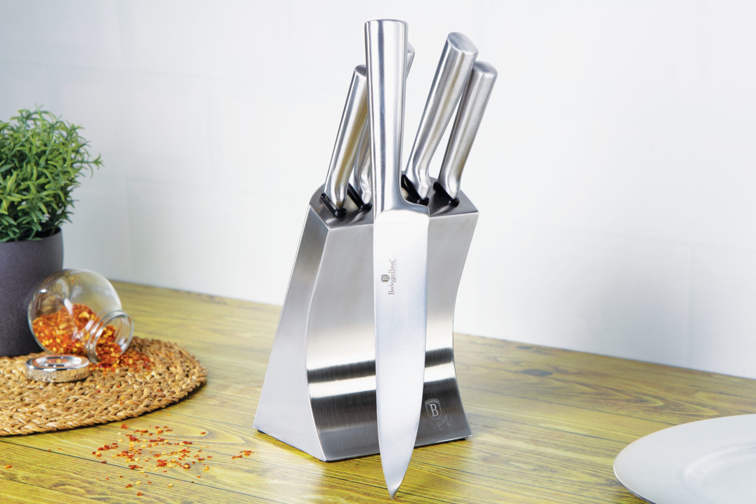 סט 5 סכינים +מעמד נירוסטה 6 חלקים
