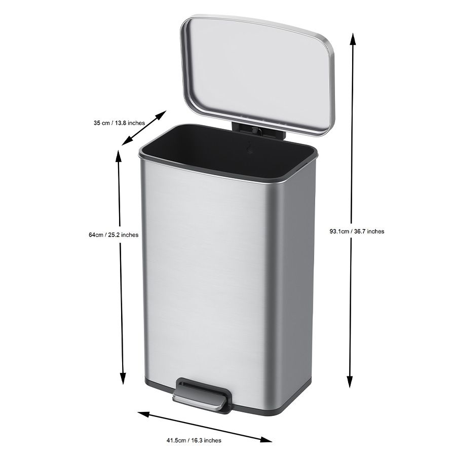 פח אשפה מרובע 50 ליטר TITUS נירוסטה מוברשת מבית EKO עם פח פנימי