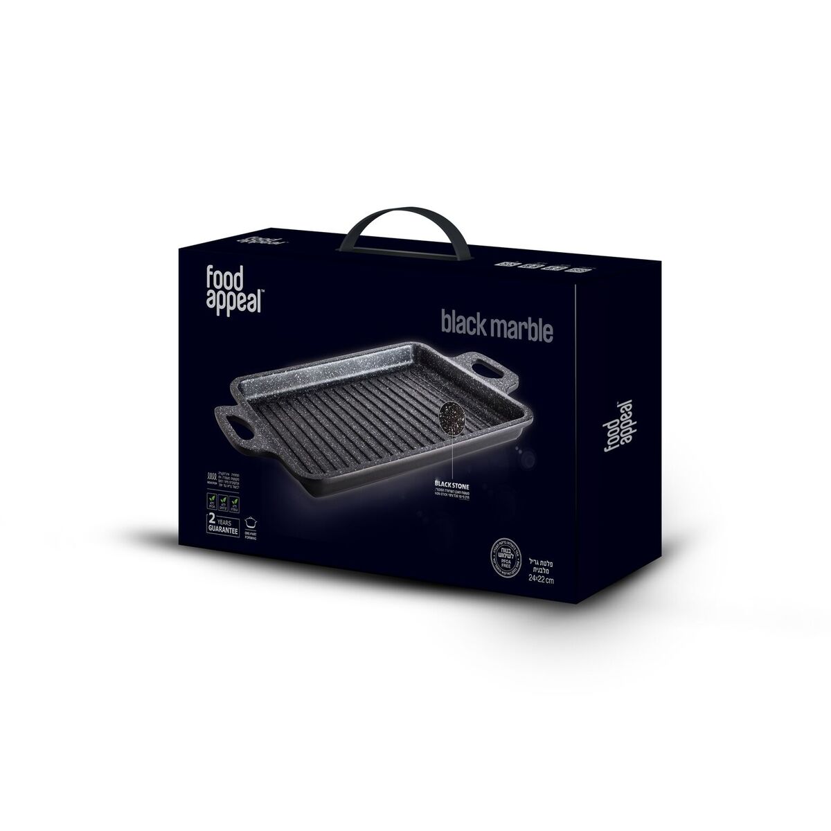 הכלים מיוצרים בעובי משתנה, בסיס עבה ושוליים צרים, לנוחות השימוש ואפקטיביות מרבית. משטח פנימי מאבן שיש black stone עם תכונות נון סטיק מעולות. בסיס עבה עם תחתית אינדוקציה מקצועית המשפרת את אפקטיביות פיזור החום – לבישול בריא עוד יותר.