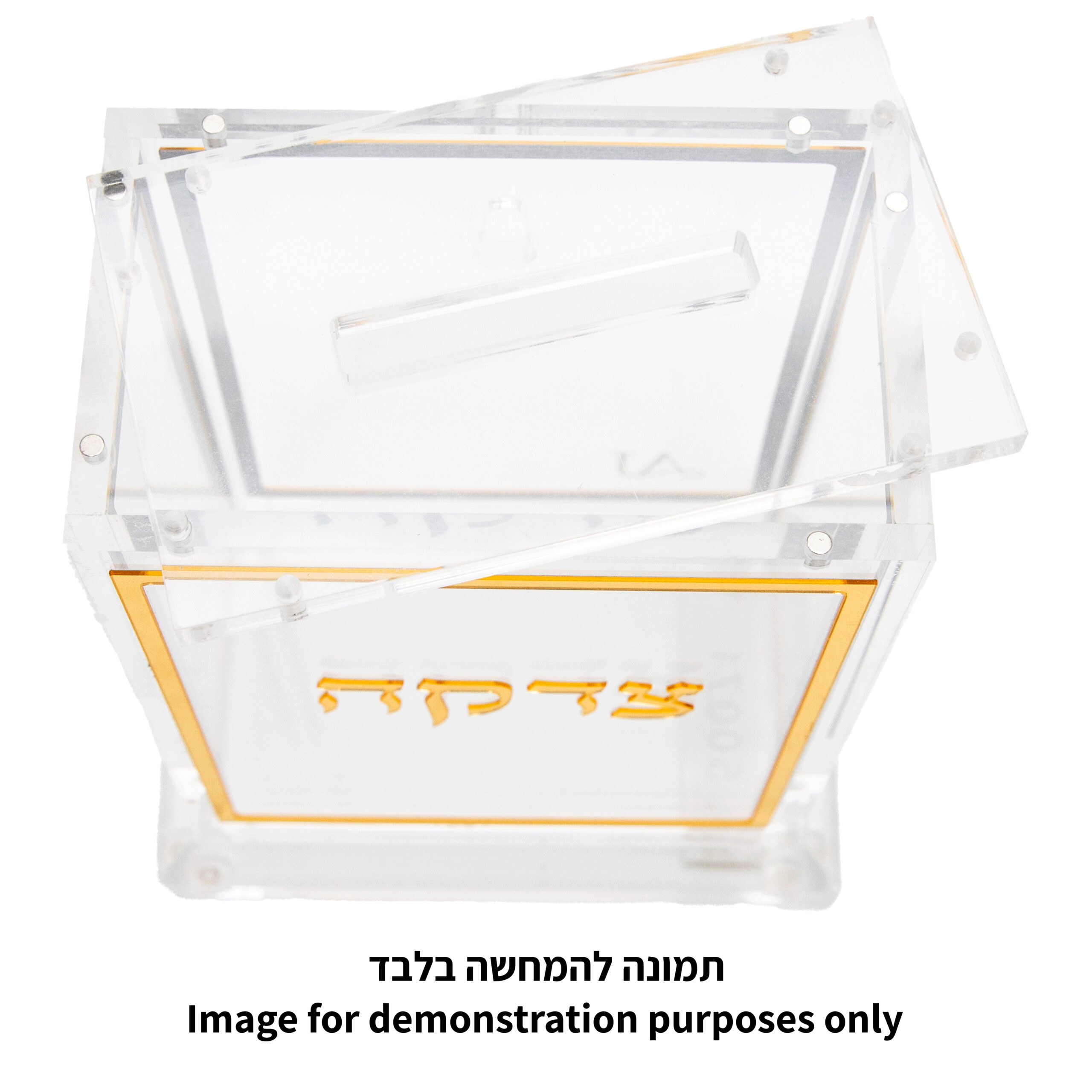 קופת צדקה אקריליק לבן זהב 13 ס"מ