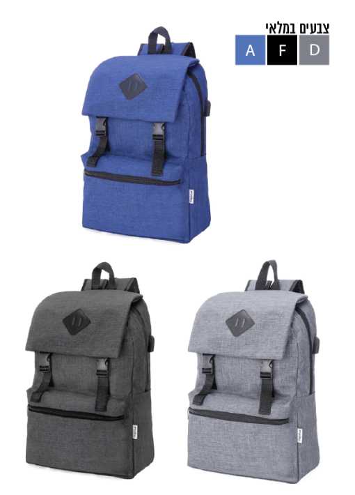 תיק גב למחשב כולל שקע USB עם רצועות סגירה מעוצבות 22 ליטר