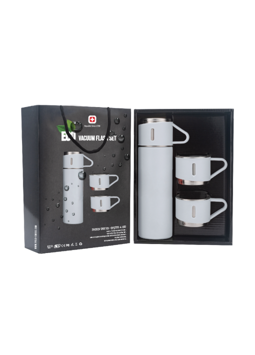 תרמוס חצי ליטר + 3 כוסות באריזת מתנה מהודרת