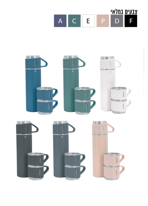 * הסט כולל תרמוס בנפח 500 מ״ל + 3 כוסות